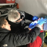 MORNING: ‘’ We were just starting our shift and were called straight to a car. There we found a woman who appeared very unwell, she was sweating, had blue lips and was complaining of chest pain. At first she did not want to be treated. The team was very concerned about her wellbeing and we explained this to her, after which she agreed to an assessment. After a short medical review and an ECG we diagnosed her with a suspected myocardial infarcation and she was urgently transported to the nearest hospital by our ambulance, accompanied by one of our medics ’’. (Words by Mirjam, MVI Nurse)